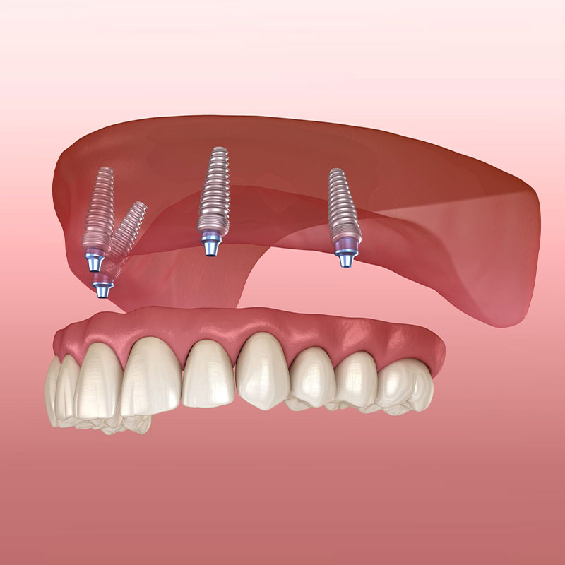- 2-4 Titanium implants by an in-house Oral Surgeon