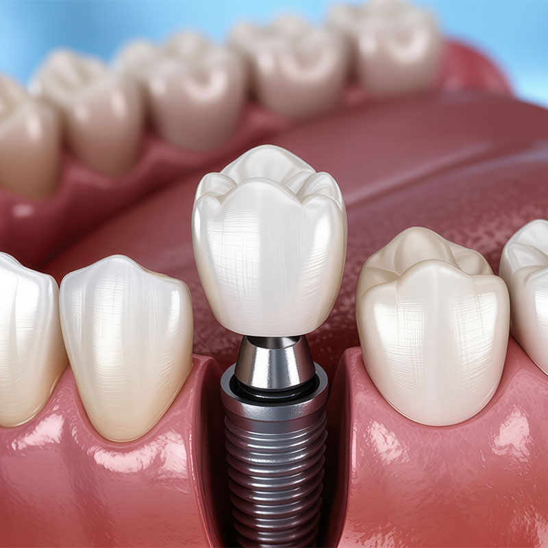 Dental implants are a long-lasting solution for replacing missing teeth by securing a natural-looking crown, bridge, or full arch of teeth to a small titanium post placed in the jawbone. This treatment restores the appearance, strength, and function of your smile while helping maintain healthy bone and facial structure.